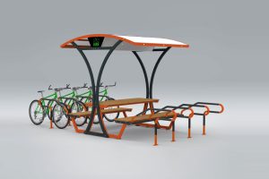 Zatražite pon Zatražite pon BS100M2 Bike stop – stol s klupama, krovom i 8 stalaka za bicikle Zatražite ponudu
